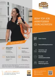 - Hohe Leistungsbereitschaft, Kommunikationsstärke, Zuverlässigkeit, Flexibilität sowie Teamfähigkeit